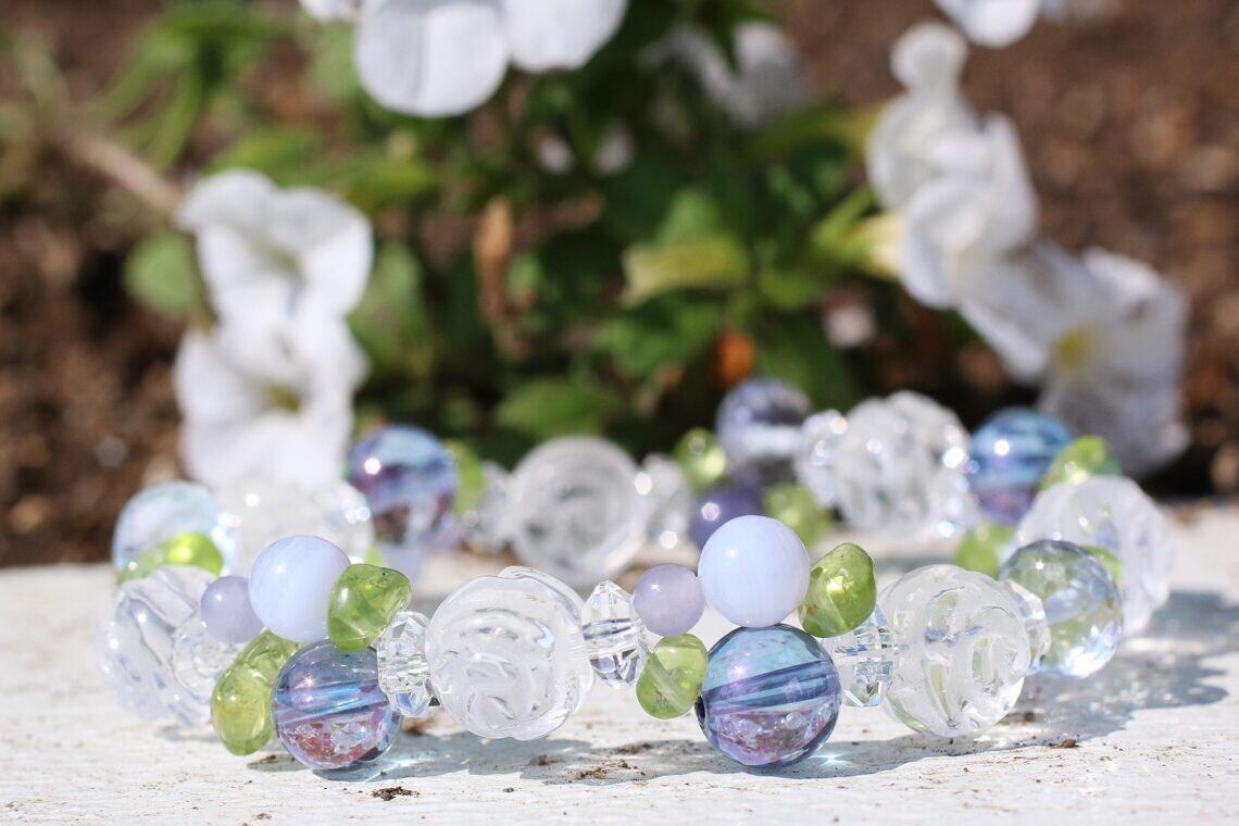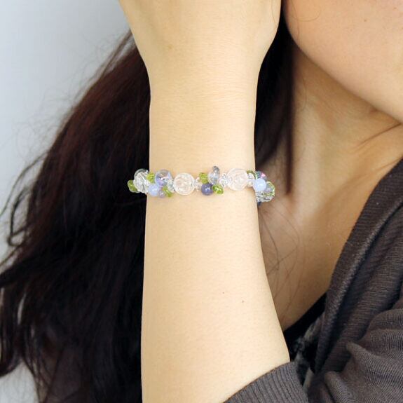 天然石の基本である水晶の薔薇をベースに花冠のようにできたブレスレットです。