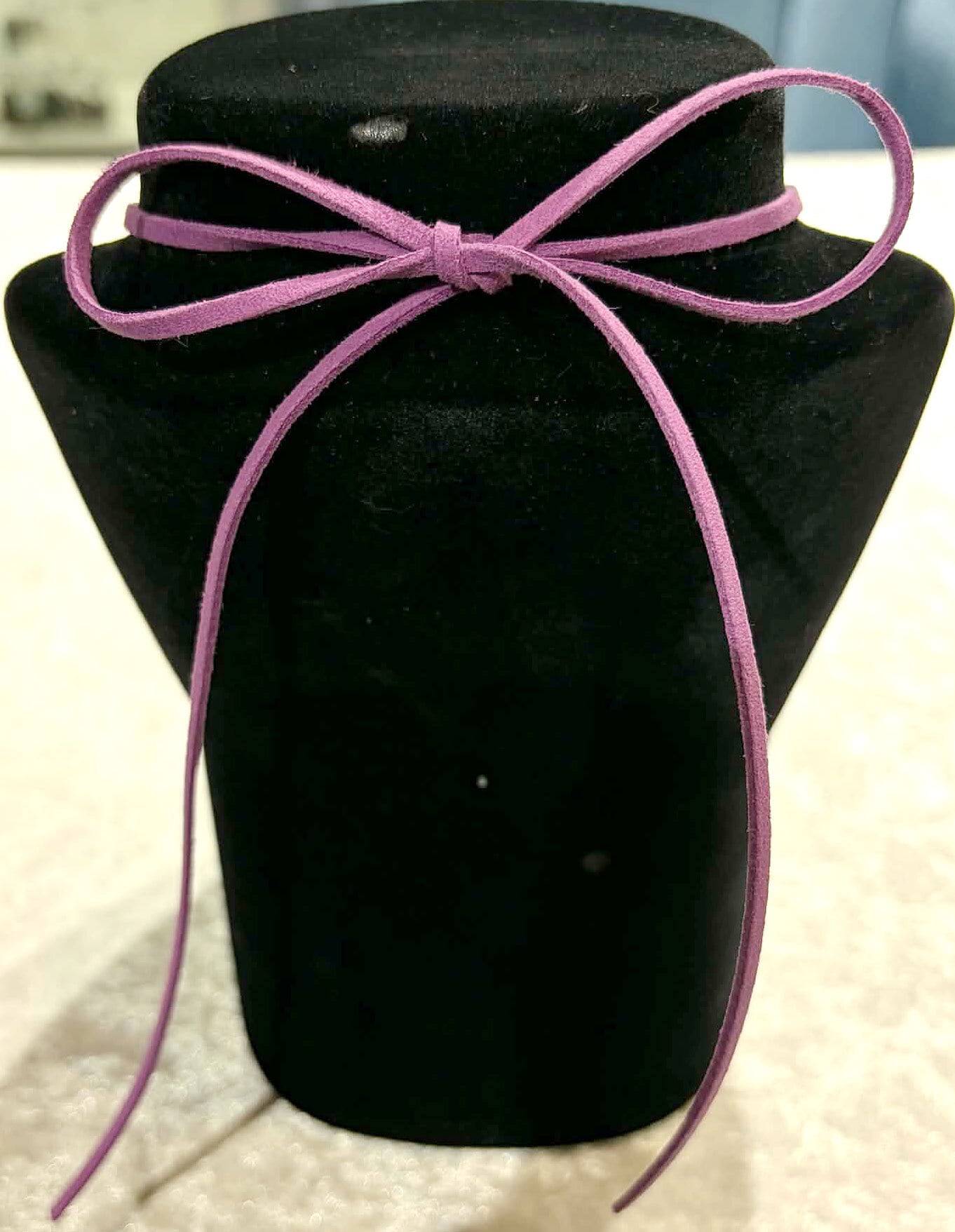 同じパープルのリボンは、バチカン部分が大きめなので